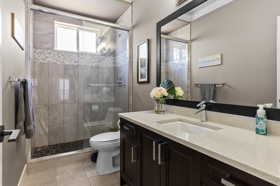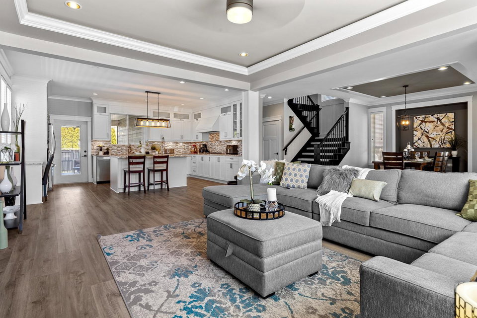 WELCOME HOME to where Design, Quality & Value intersect perfectly. Exceptionally designed OPEN CONCEPT 6 bed/5 bath + DEN incl 2 bdrm/1bth SUITE. BEAUTIFUL Chef’s Gourmet Kitchen w/quartz countertops, large island, stainless steel appliances incl microwave, wall oven and gas cooktop. NEW Engineered hardwood through main, designer lighting & lots of windows for natural light. LARGE maintenance free 4800sqft lot w/high-grade synthetic turf. Master bedroom w/walk-in-closet + THREE additional large bedrooms. Ample parking w/Double car garage. FULLY FINISHED basement with MEDIA ROOM and BONUS 2 bdrm self-contained w/separate entry & laundry. Ideal for large family or mortgage helper. Walk to Douglas Elementary, close to White Rock beach, shopping & Easy access to Hwy 99. Rare opportunity!