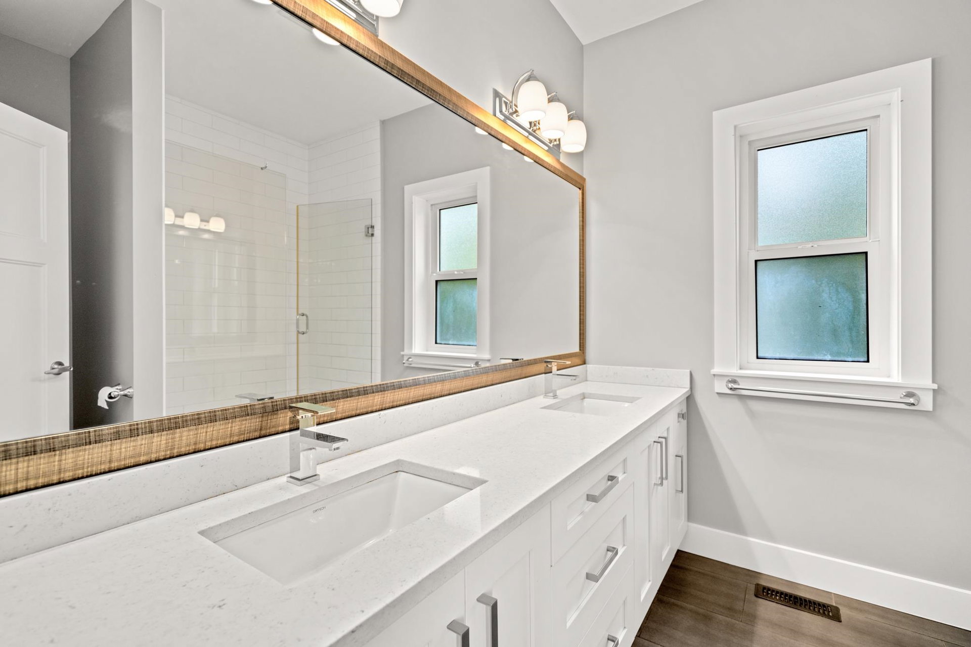 Welcome home to where Design, Quality & Value intersect perfectly. Exceptionally designed 5 bed/4 bath + DEN family home on 2,971 sqft SOUTH facing lot. BEAUTIFUL Chef’s Kitchen w/quartz countertops, WHITE cabinets, LARGE island & stainless steel appliances. HIGH-GRADE wide plank laminate flooring throughout, designer lighting & lots of windows for natural light. Master bedroom w/walk-in-closet, spa-inspired ensuite features double sinks and LARGE shower. 2 additional bdrms up w/LAUNDRY. Detached double garage w/additional car pad and quiet lane for kids to play. Private low-maintenance yard. Basement w/separate entry and suite potential for a 2 bdrm Mortgage helper. Private low maintenance yard. Close to White Rock, HWY99, Shopping. 7-acre park, brand new Elementary school. DON’T MISS!