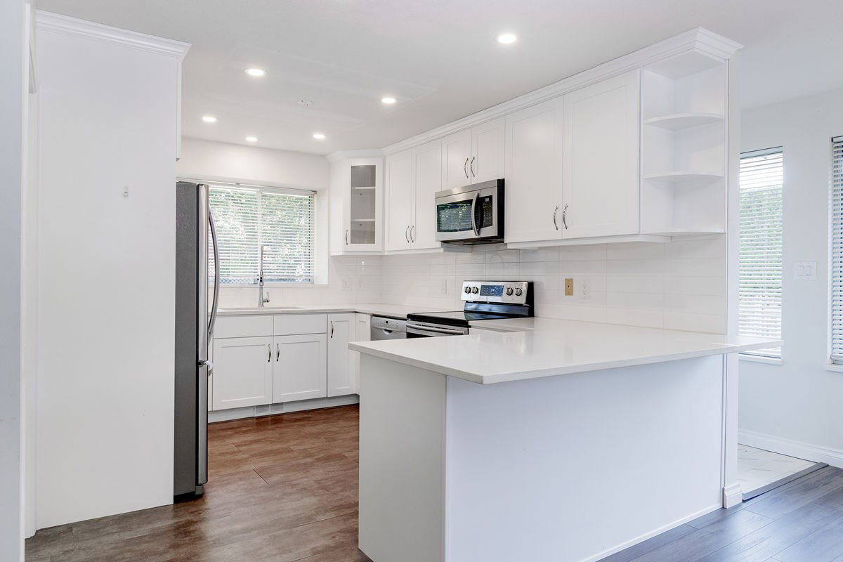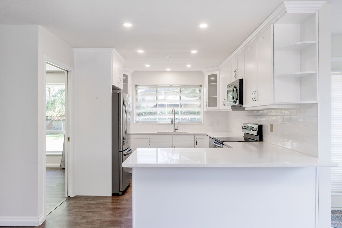 Welcome to Meadowbrook! This 3 bdrm/2 bth RENOVATED family home features new hardwood flooring, white shaker kitchen w/quartz countertops and breakfast bar, stainless steel appliances and LED lighting throughout. Bright and open floorplan with plenty of windows offering natural light in the formal living w/gas fireplace and dining room. The family room features a gas fireplace which opens to the kitchen. LARGE and PRIVATE 1/4 acre south facing backyard is fully fenced with large patio area. BONUS 2 car garage with extra large driveway for additional cars or RV parking. Walking distance to all that Brookswood has to offer including schools, shopping, recreation and other amenities. Perfect for a young family or downsizer! MUST SEE!