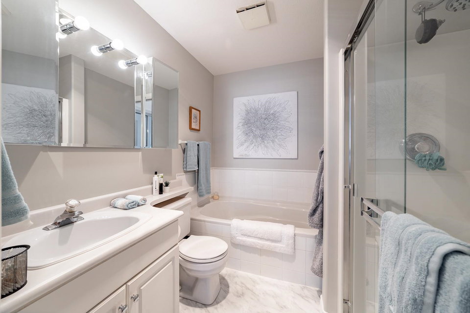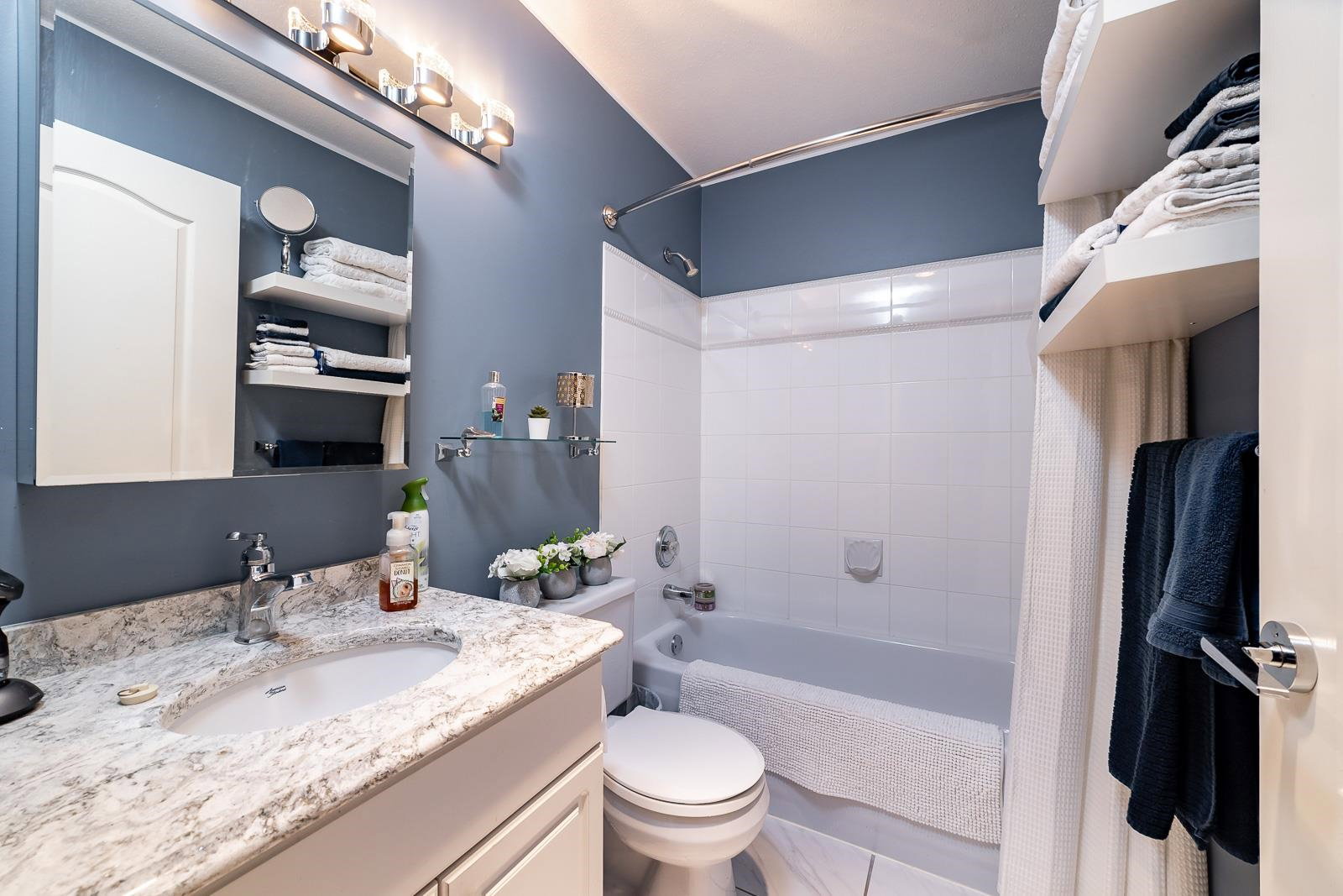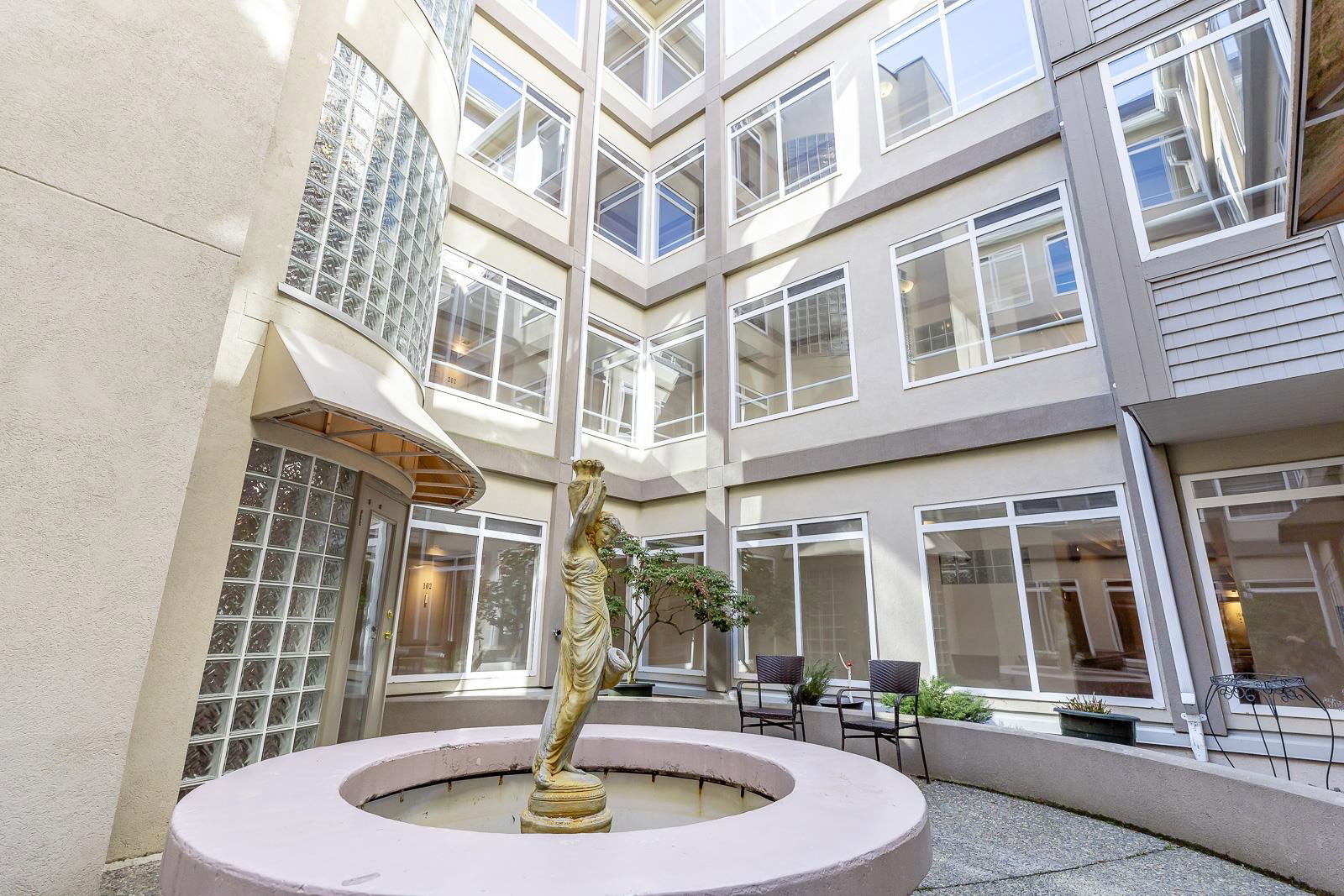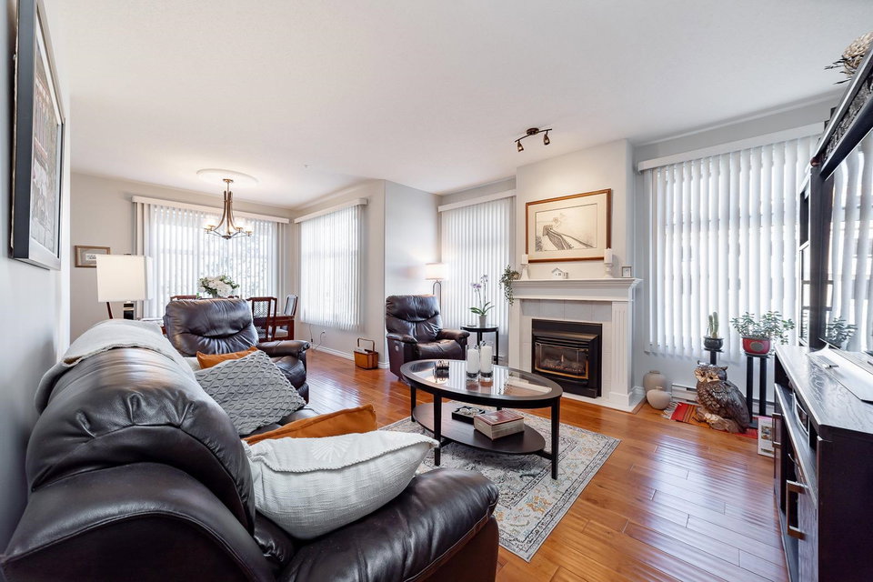 Welcome to The Devonshire! QUALITY CRAFTSMANSHIP and MODERN DESIGN! Beautifully updated 2 bed/bath CORNER UNIT with open concept Floorplan features quartz countertops, stainless steel appliances, top quality laminate flooring throughout, lots of windows providing natural light, gas fireplace and in-suite laundry. BONUS: 1 parking stall PLUS storage locker and PRIVATE COVERED DECK. Amenities include underground secure parking, work shop, storage locker, guest suite , exercise room, meeting/event room. Conveniently located to shopping, restaurants and many other amenities. BE QUICK….WON’T LAST!