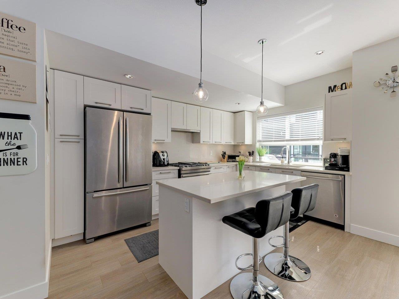 Welcome to FAIRWAYS overlooking PEACE PORTAL GOLF COURSE! Georgie Award Finalist Built by Award-Winning Zenterra Developments! This OPEN CONCEPT 2100 sqft 4 bed/4 bath END UNIT townhome offers timeless MODERN design and TOP QUALITY finishings. GOURMET white kitchen is complete with a 5-burner gas range, stainless steel Jenn-Air appliance package and built-in microwave. AMPLE windows to allow for natural light and 9ft ceilings on main. BONUS powder room on main, side-by-side double car garage, built-in vacuum & air conditioning. PRIVATE rear patio backs onto the golf course. Minutes to White Rock beach, Easy access to Hwy 99, 7 acre park, BRAND new Elementary school in a family friendly neighbourhood!